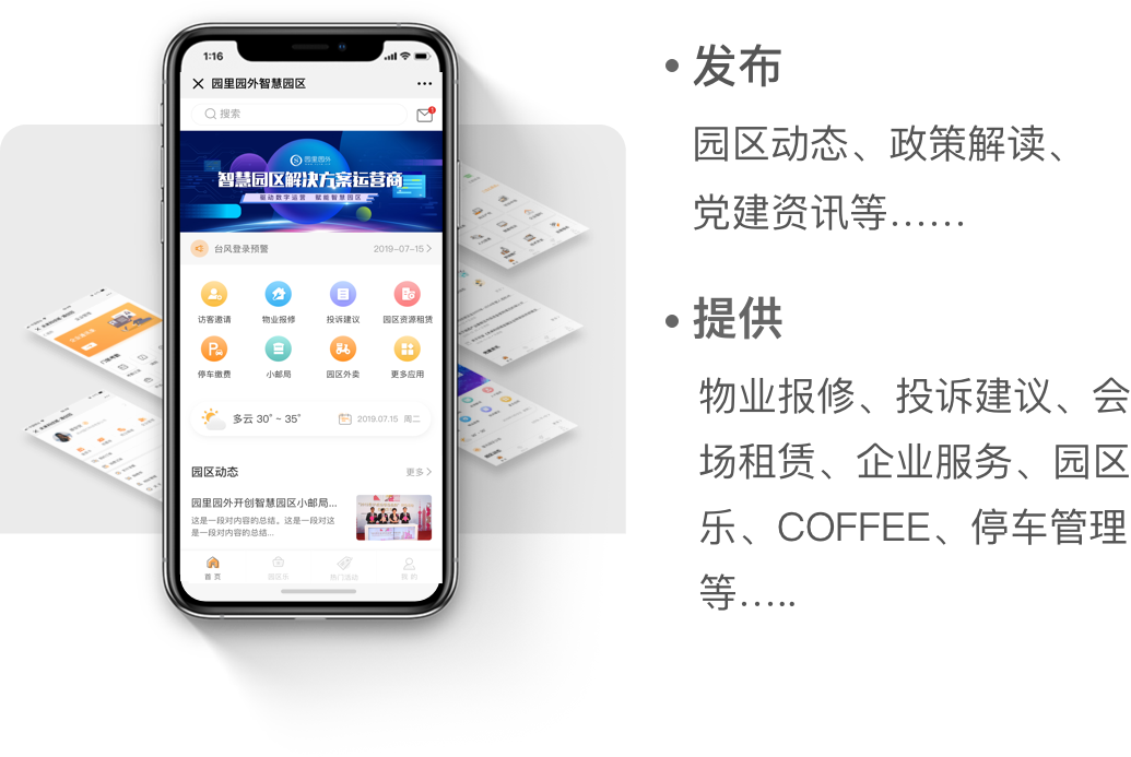 为园区提供“便捷化、一体化、智能化”的全新服务体验,提升园区运营软实力。
